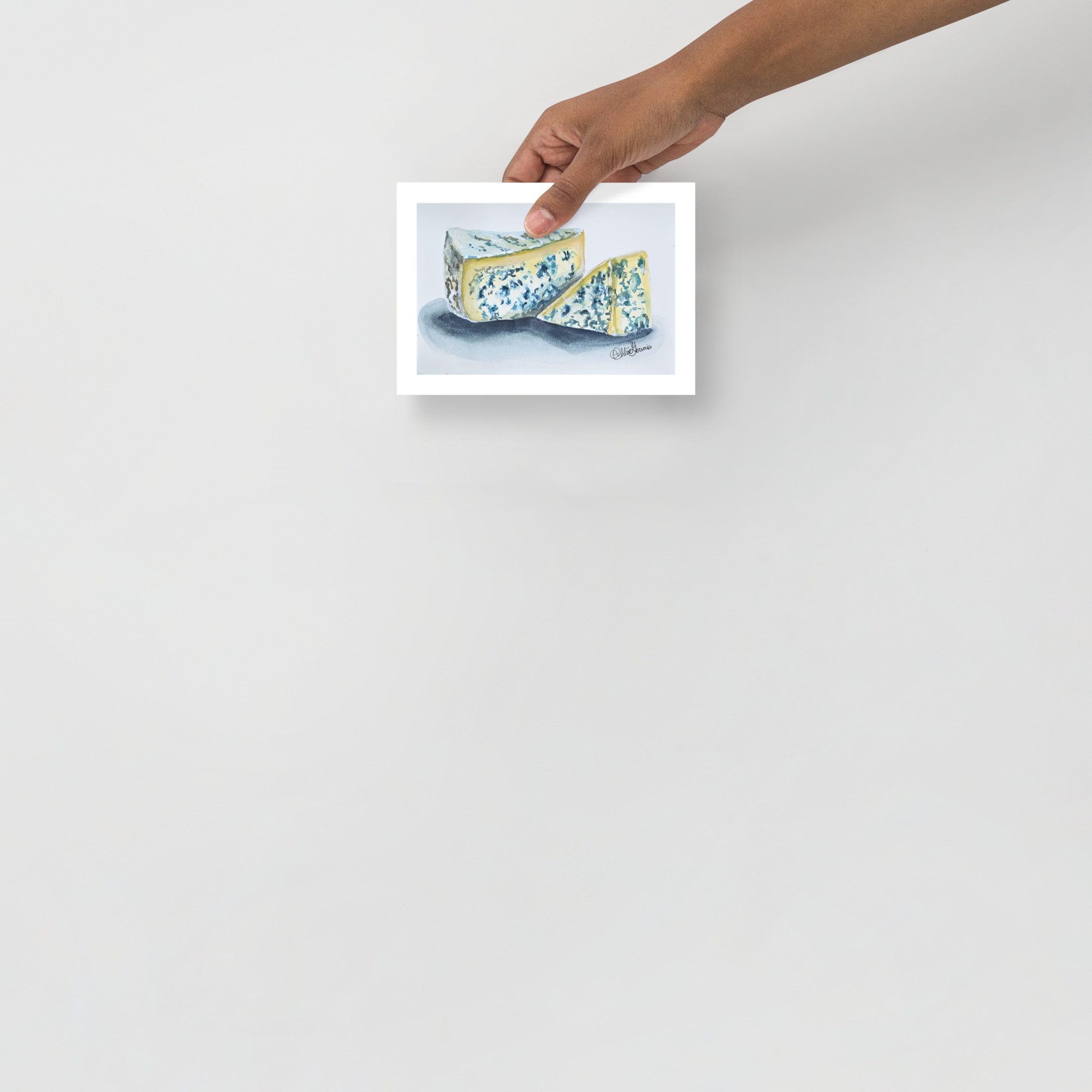 In this piece, I focused on capturing the marbled blue veining, the soft golden interior, and the subtle textures that make this cheese so visually irresistible. The cool shadows ground the wedges while allowing the creamy warmth of the cheese to glow against the white space.