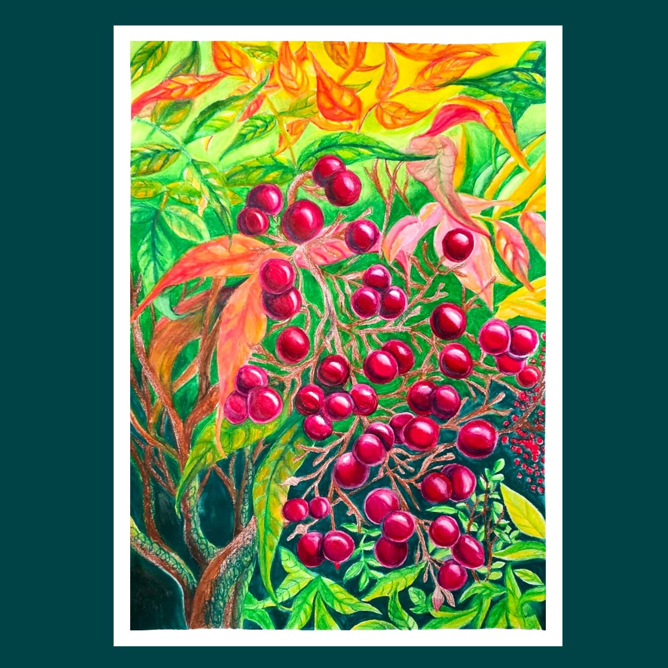 This piece was inspired by a quiet moment, a walk with my family on Christmas Day. I came across this plant, delicate yet vibrant, something that could have easily been passed by without a second glance.